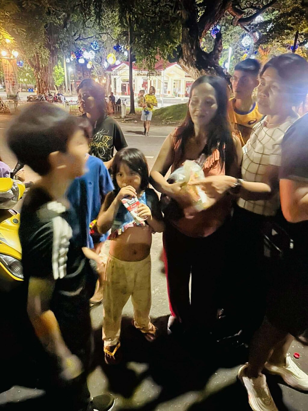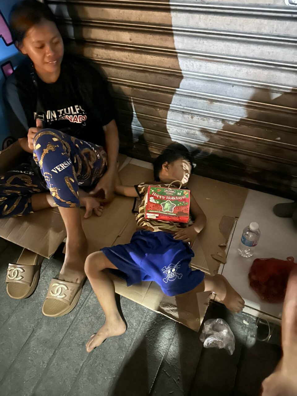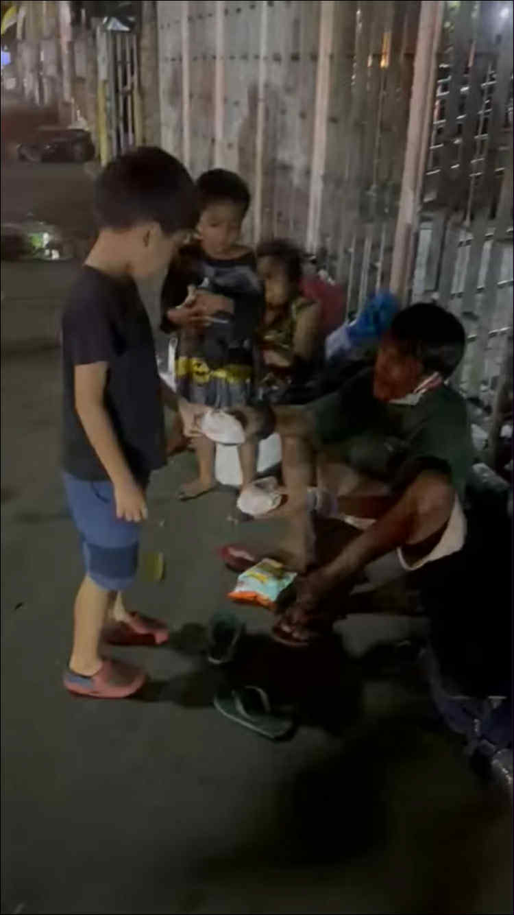 夜9時を過ぎてから、バイクで街を回り、探しながらプレゼントを手渡します。 路上の隅で眠る子どもたち。