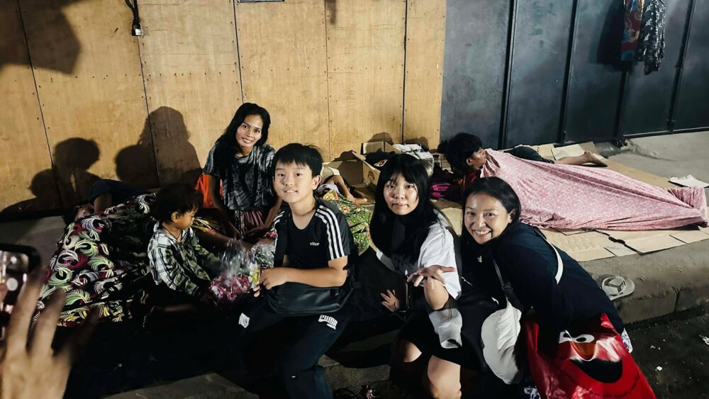路上で眠る子どもたちを初めて目にし、 あまりの現実に、はなちゃんとじょう君は言葉を失っていました。 大学生たちも同じです。 初めて見る光景に、きっと心の中で何かが強く響いたはずです。 何度も参加しているひなた君にも、この経験が、誰かの人生を変えるきっかけになる。 そう信じながら、今年もクリスマスの夜を走りました。
