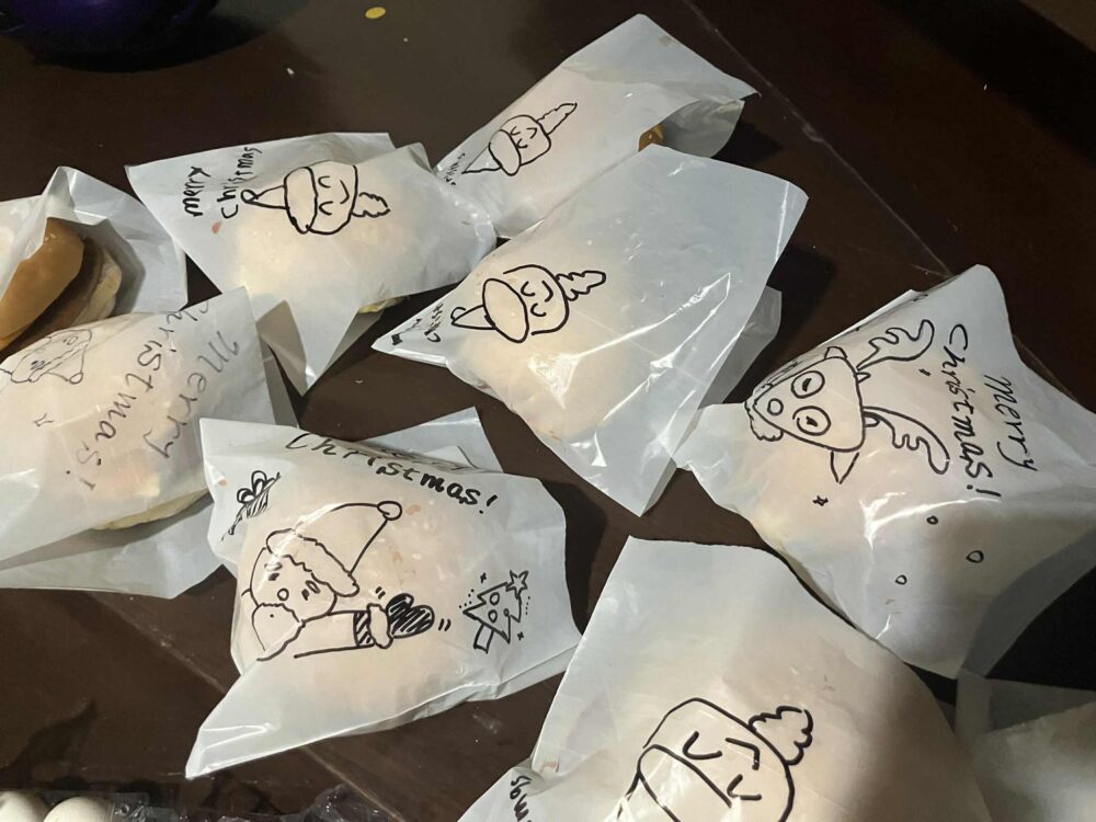 「貧しくても、クリスマスはお祝いしたい」 そんなフィリピンの人たちに、少しでも笑顔を届けたい。 各家庭で、食べ物やお菓子、手作りのハンバーガー、